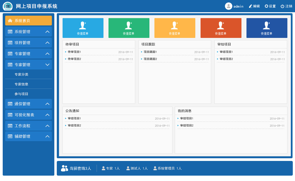 項(xiàng)目申報(bào)系統(tǒng)是科技局對(duì)于提高企業(yè)自主創(chuàng)新能力,解決經(jīng)濟(jì)和社會(huì)發(fā)展中的關(guān)鍵共性技術(shù)問(wèn)題而建立的科技成果展示平臺(tái),平臺(tái)為促進(jìn)科技成果應(yīng)用轉(zhuǎn)化具有極大的作用,一般每年都有若干個(gè)批次。根據(jù)當(dāng)?shù)氐目萍及l(fā)展規(guī)劃,每批次的計(jì)劃種類可能不同,一個(gè)完整的科技計(jì)劃項(xiàng)目需經(jīng)項(xiàng)目申請(qǐng)、審查、審批、簽約(合同)、年報(bào)、項(xiàng)目驗(yàn)收等幾個(gè)基本過(guò)程。系統(tǒng)共分為為2個(gè)子系統(tǒng),即網(wǎng)上申報(bào)子系統(tǒng)和科技計(jì)劃項(xiàng)目信息管理子系統(tǒng)。