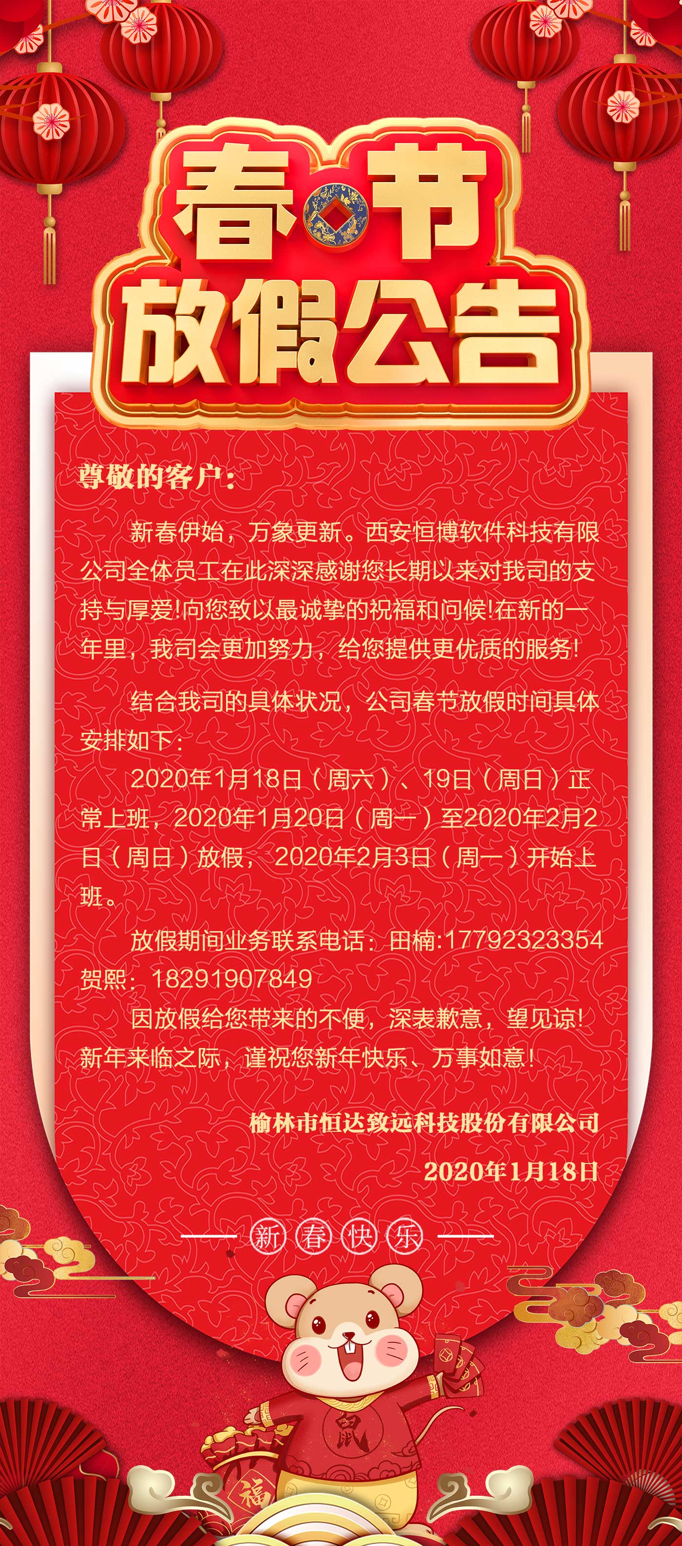 榆林恒達致遠科技股份有限公司2020年春節放假通知